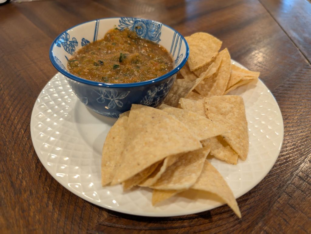 This is a great everyday salsa with a bit of a kick. I have included weights for all of the ingredients because I have found large variation in size for every single one.